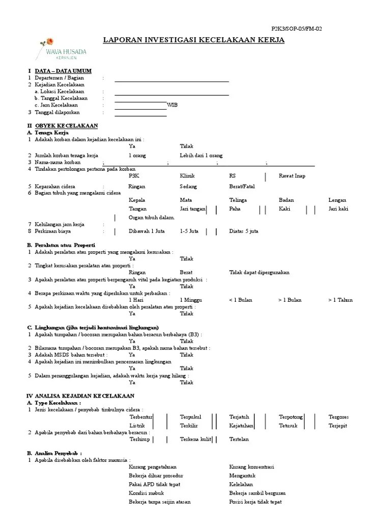 Form laporan insiden investigasi img. Kecelakaan akbat kerja tanggal :……………. Nomor laporan investigasi kecelakaan kerja i. Formulir daftar hadir induksi keselamatan konstruksi. Sebagai bentuk pencegahan, setiap perusahaan wajib memiliki tenaga profesional k3 yang dilatih lewat pelatihan k3 untuk mencegahnya.